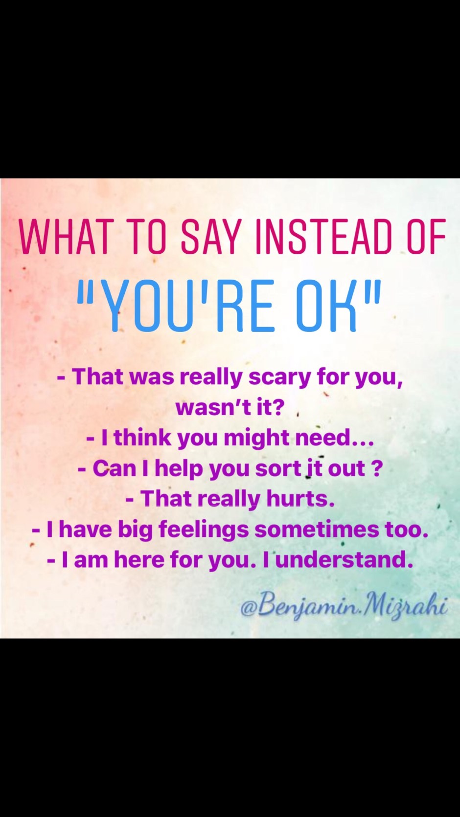 Are they okay? Yes, of course they are. But when we tell them that, we’re telling them how to feel in that situation — when it’s not up to us. They need to understand what’s happening with their emotions, but they can’t understand if we don’t explain it properly.