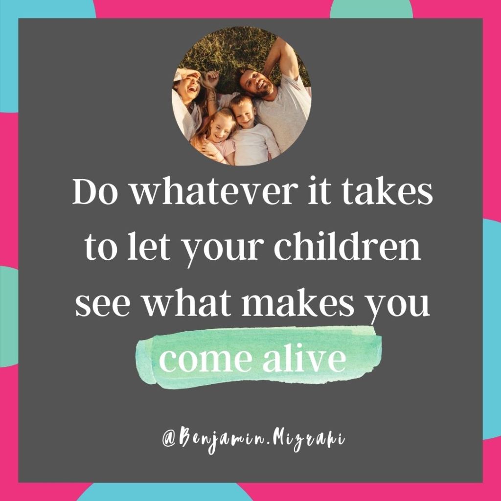 So, if we want to model things we want to pass on to our children, shouldn’t we show them what it looks like to “come alive” by seeking out things we LOVE to do? (this doesn’t have be something related to a career…it could be art, sports, volunteering – anything that makes our hearts soar!)