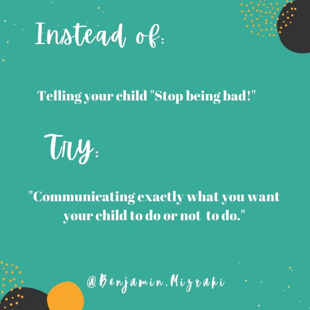 When your child is misbehaving, the easiest thing to do is clearly communicate what you would like them to stop doing or do instead.