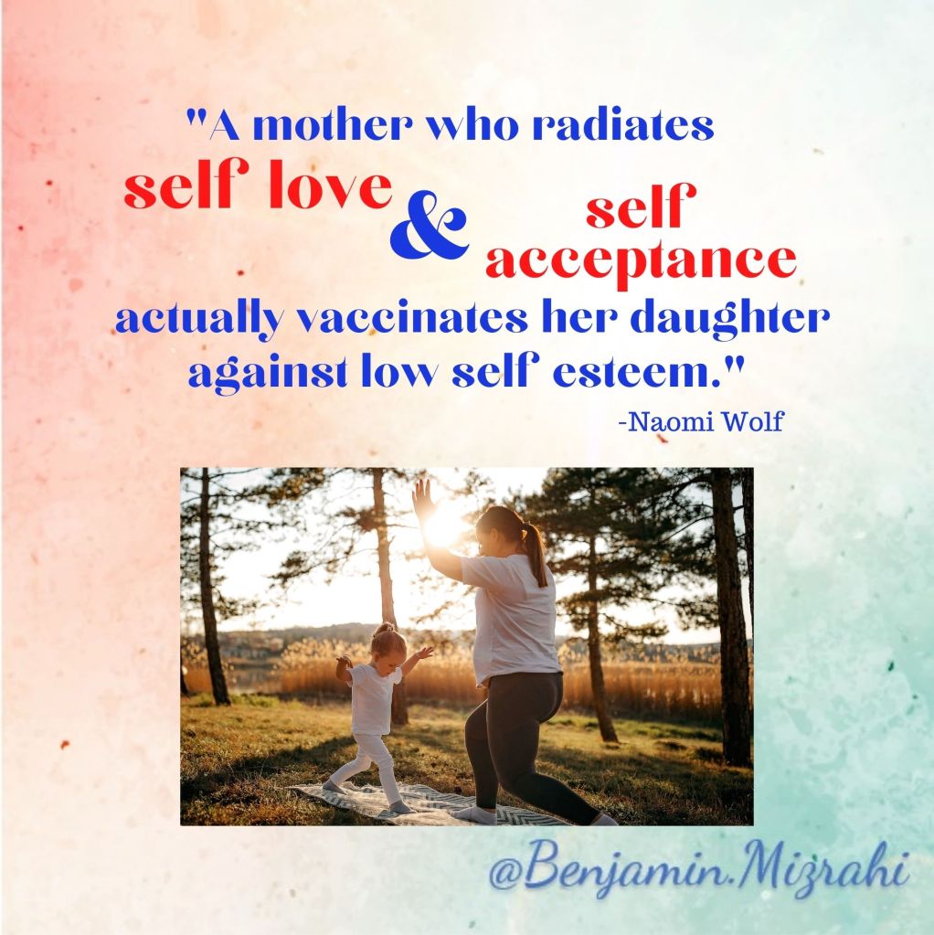 Accepting ourselves not only improves our self-esteem – it helps our children’s self-esteem too. If we go through life making comments like, “I look so big!” Or “Mommy messed that up again!” – our children are going to learn that negative self-talk is okay. When we embrace who we are and ditch the denigrating comments – our children are much more likely to do the same. So, after decades of self-criticism, how do we start to accept ourselves?