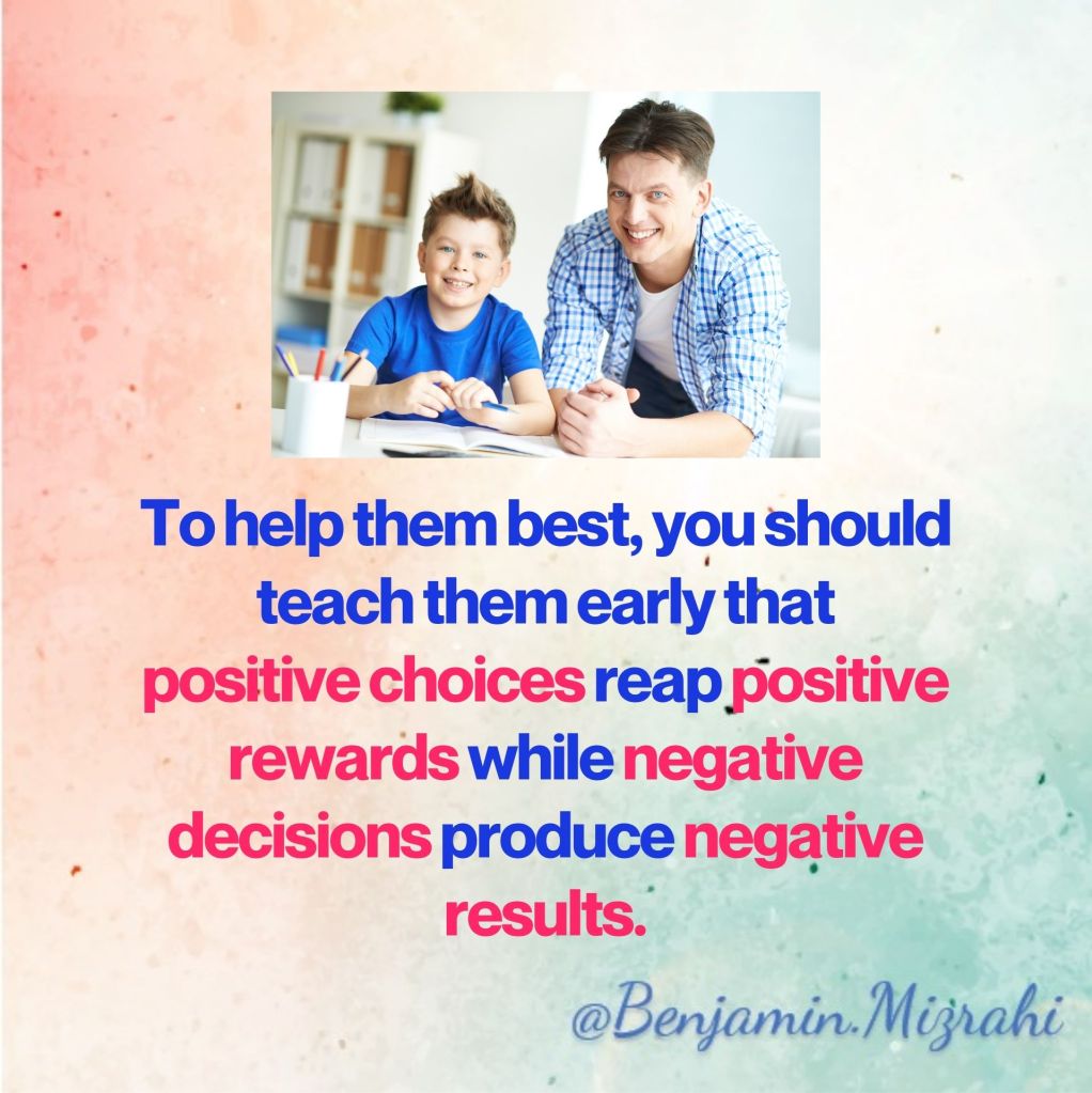 To help them choose well, you need to let them know about decision making. They need to have a basic foundation of how decisions and consequences function. To help them best, you should teach them early that positive choices reap positive rewards while negative decisions produce negative results.