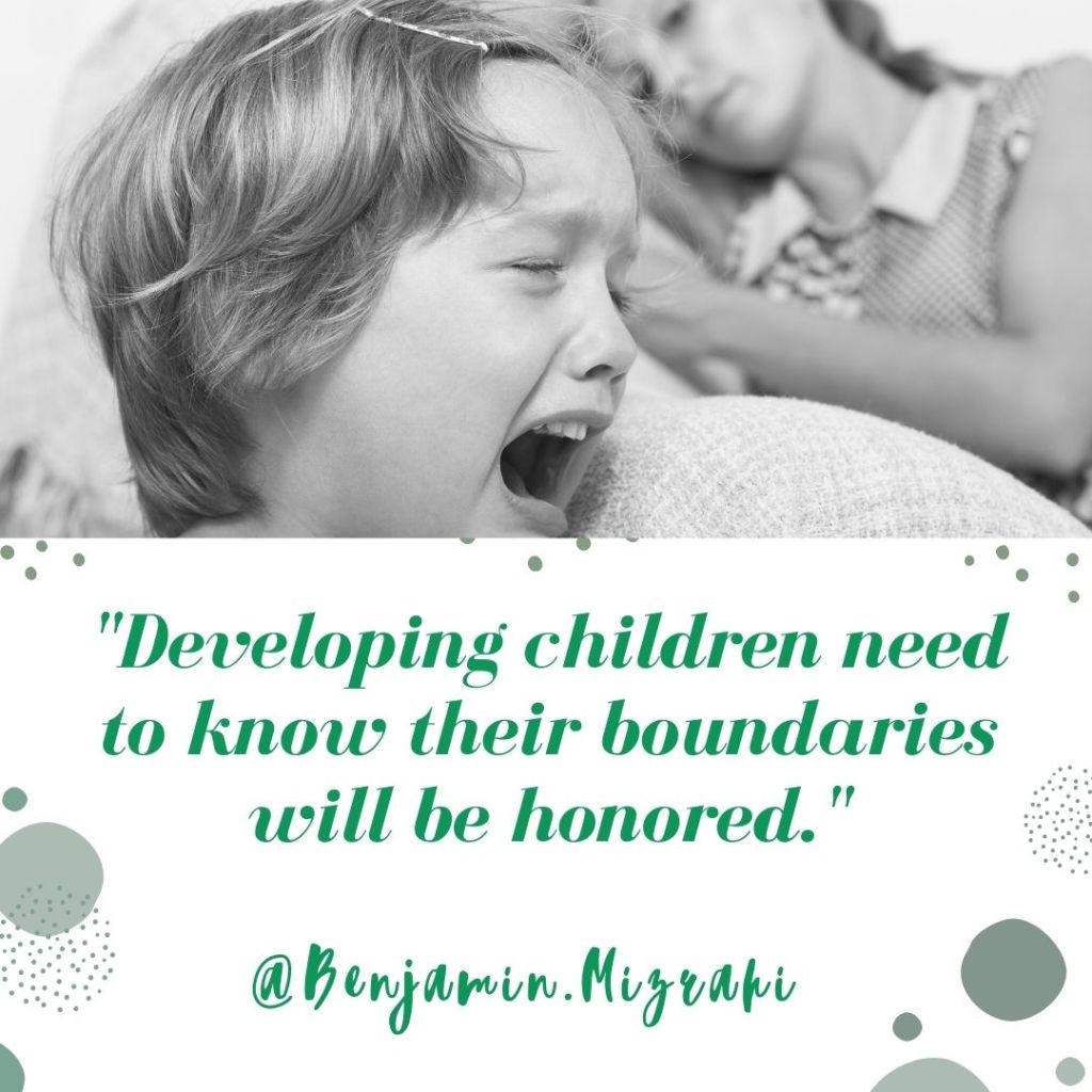 Emotional disconnection is withdrawing without explanation or avoiding your child whereas remaining connected will involve an explanation for what’s happening without becoming hostile, aggressive, or withdrawn. This pulling away and disconnection teaches our children some of their earliest lessons on boundaries. What they learn is that “I am only lovable when I behave.” This child will then learn to fall in line and keep the peace. They will avoid disagreeing to keep the relationship. They may fear that setting boundaries will lead to loss of relationships.
